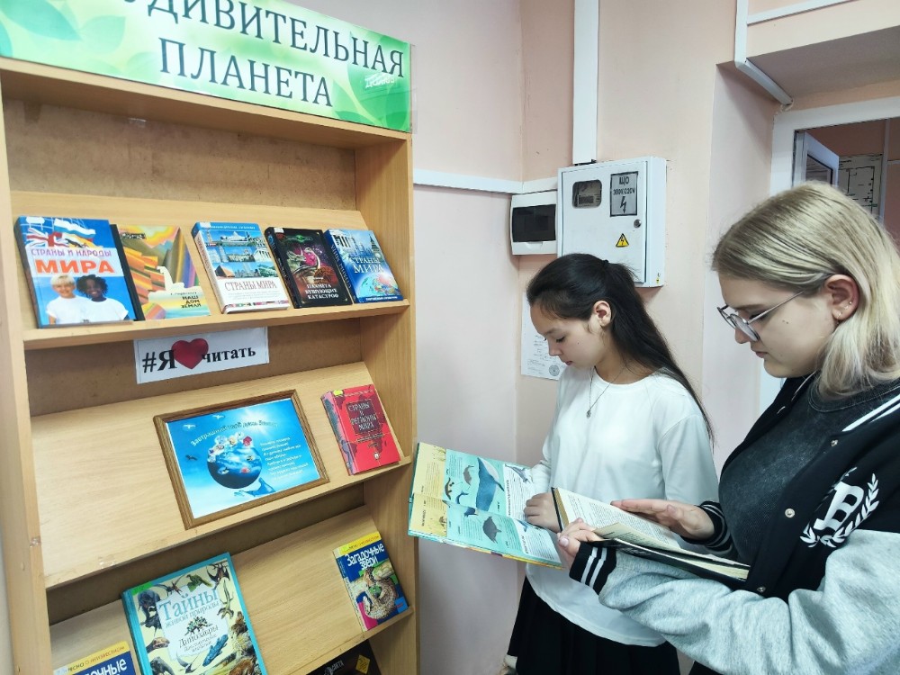 На выставке были представлены книги о разнообразии живых орнанизмов, населяющих нашу планету, странах и народах мира, удивительных природных явлениях.